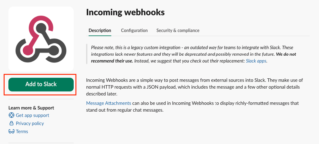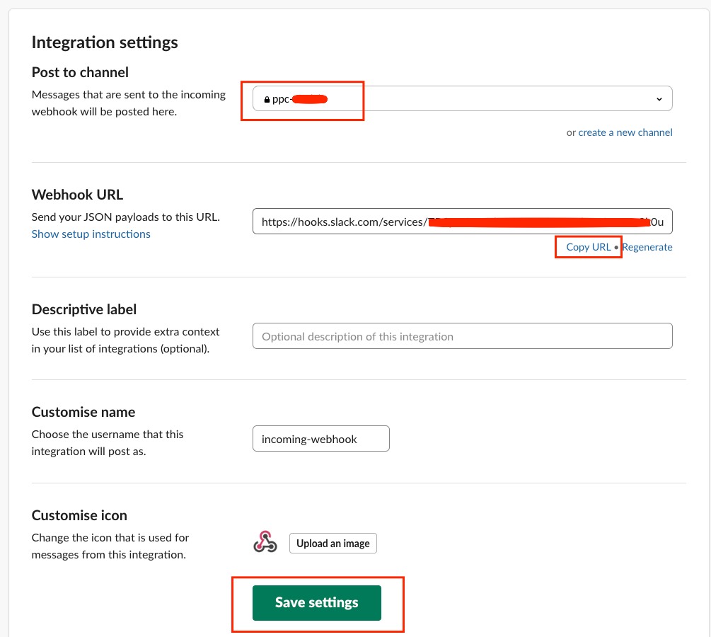 - Once the channel is selected, Slack automatically generates a unique Webhook URL.